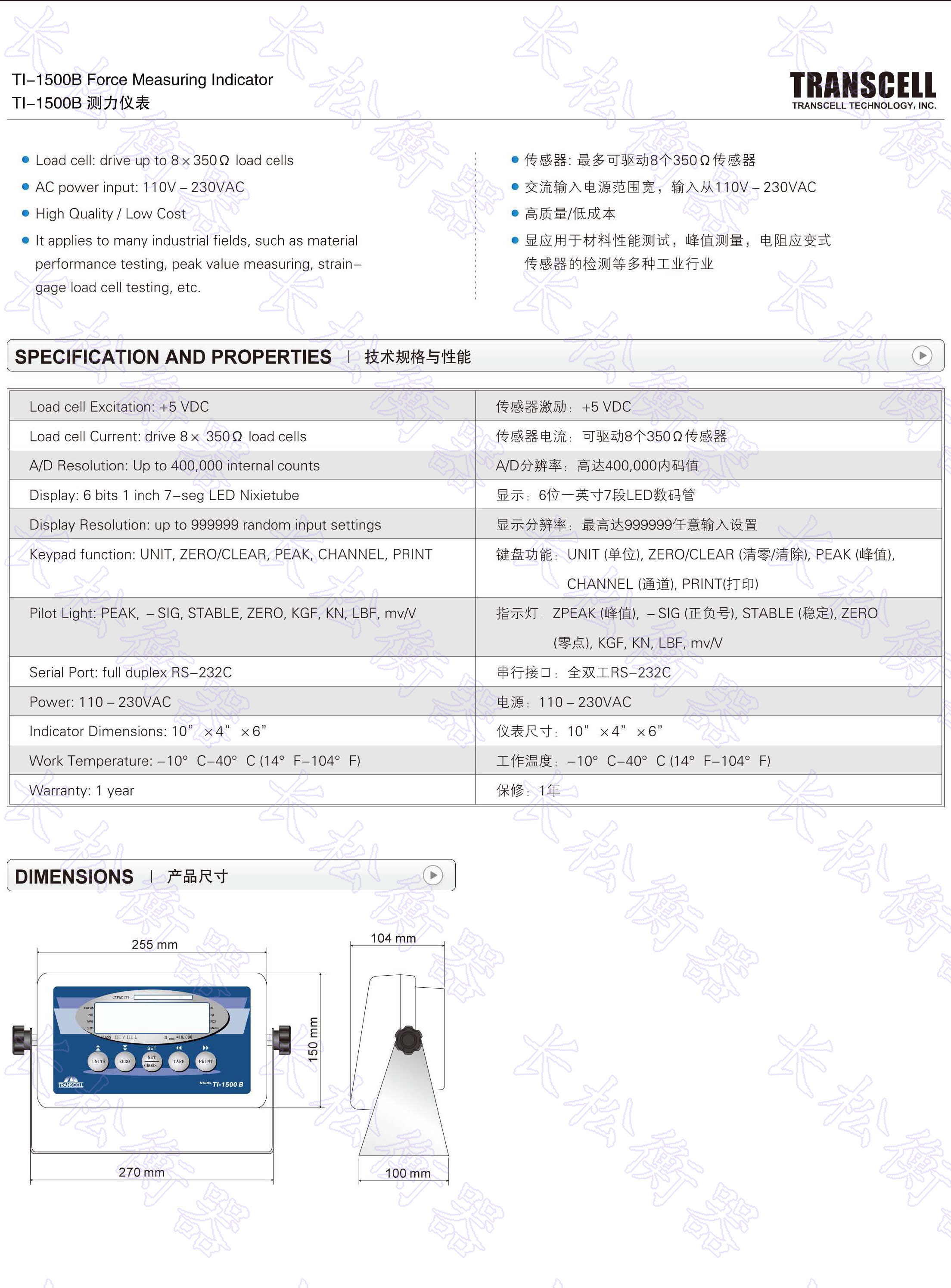 • 產(chǎn)品名稱:美國 Transcell TI-1500B 測力儀表
